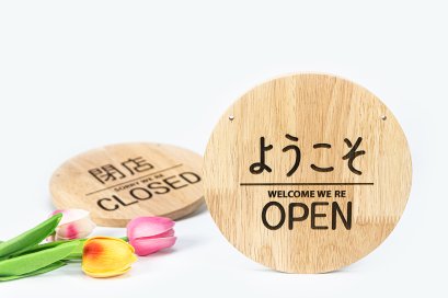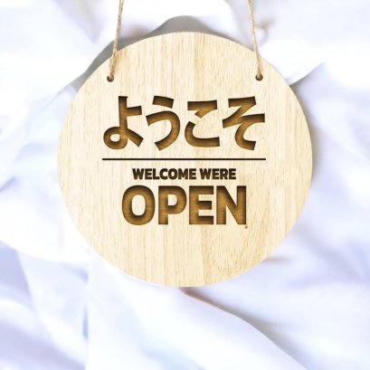ป้ายเปิด-ปิด แบบที่9 ทำจากไม้สนนิวซีแลนด์ หนา15มม. สลักเลเซอร์