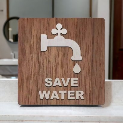 ป้ายไม้เตือนการใช้งานน้ำประปาอย่างประหยัดเพื่อให้ใช้น้ำอย่างคุ้มค่า